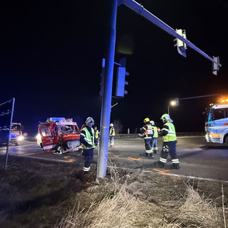 Kurz nach der Ortsausfahrt Traiskirchen auf der B17, im Bereich der Autobahnabfahrt, kam es zu einem Verkehrsunfall. Ein PKW kollidierte mit dem Vorausrüstfahrzeug (VRF) wodurch dieses von der Fahrbahn abkam und frontal gegen einen Ampelmasten prallte. Durch einen Funkspruch eines der im Fahrzeug befindlichen Mitglieder wurde die BAZ Baden darüber informiert und der Rettungsdienst angefordert. Im ersten Moment wurden drei Mitglieder als leichtverletzt eingeschätzt, ein weiteres Mitglied als schwerverletzt.